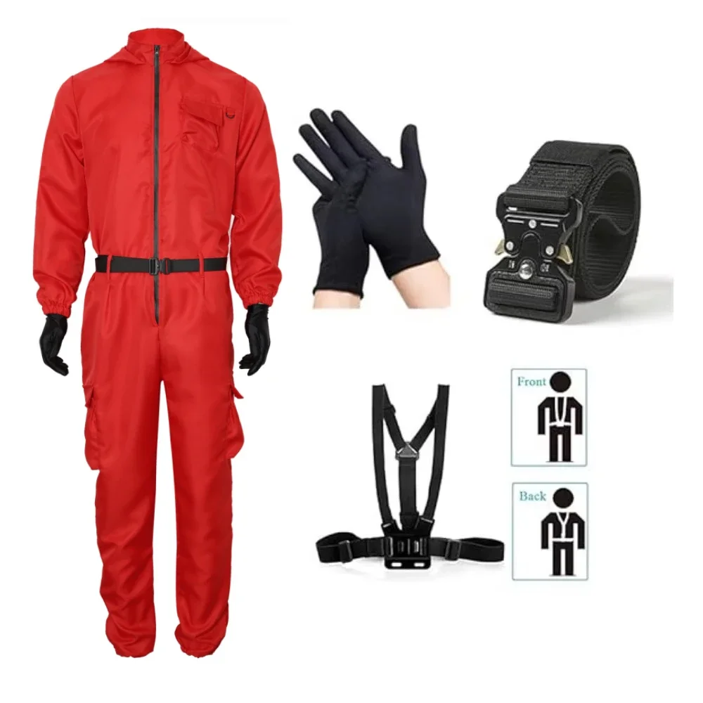 Korean TV Red Calamari Game Jumpsuit Cosplay Outfit Teenagers Tracksuit Hooded Overall Belt Gloves braces Set Halloween