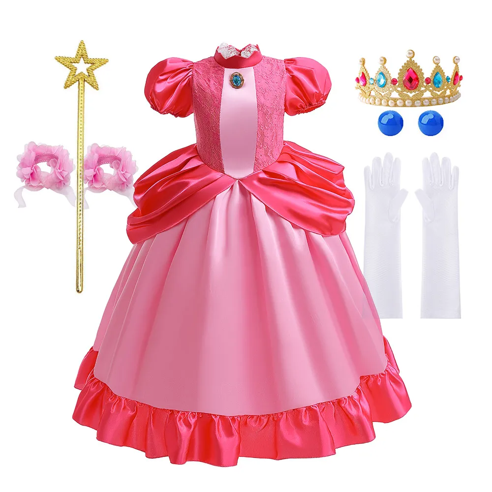 Pumber Bros Vedio Game Movie Cosplay Girl Peach Dress up Lace Ball Gown Princess Costume Kid Cute Halloween Clothing Frock 2-10Y