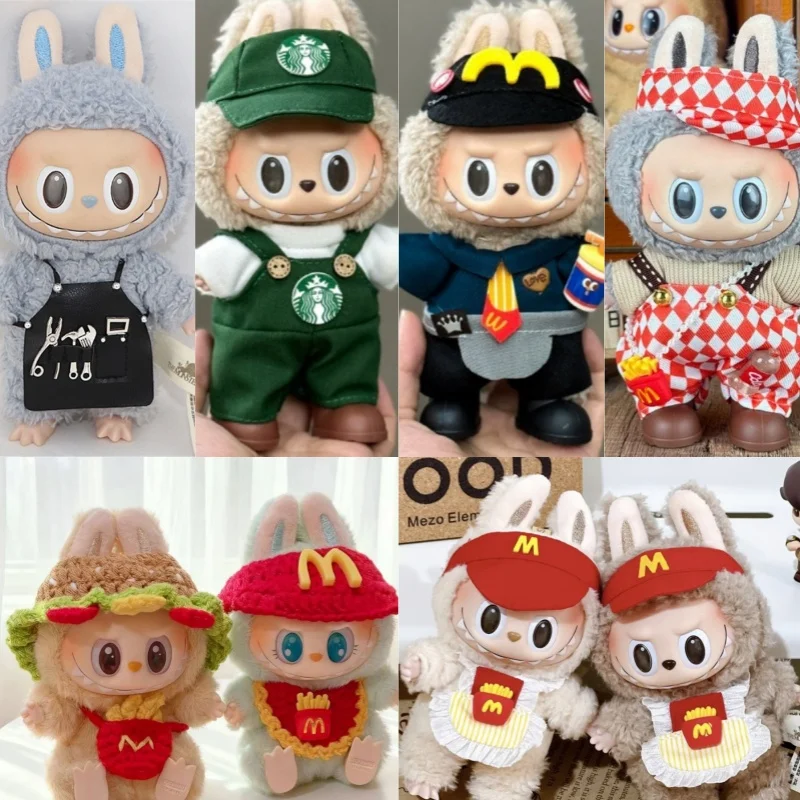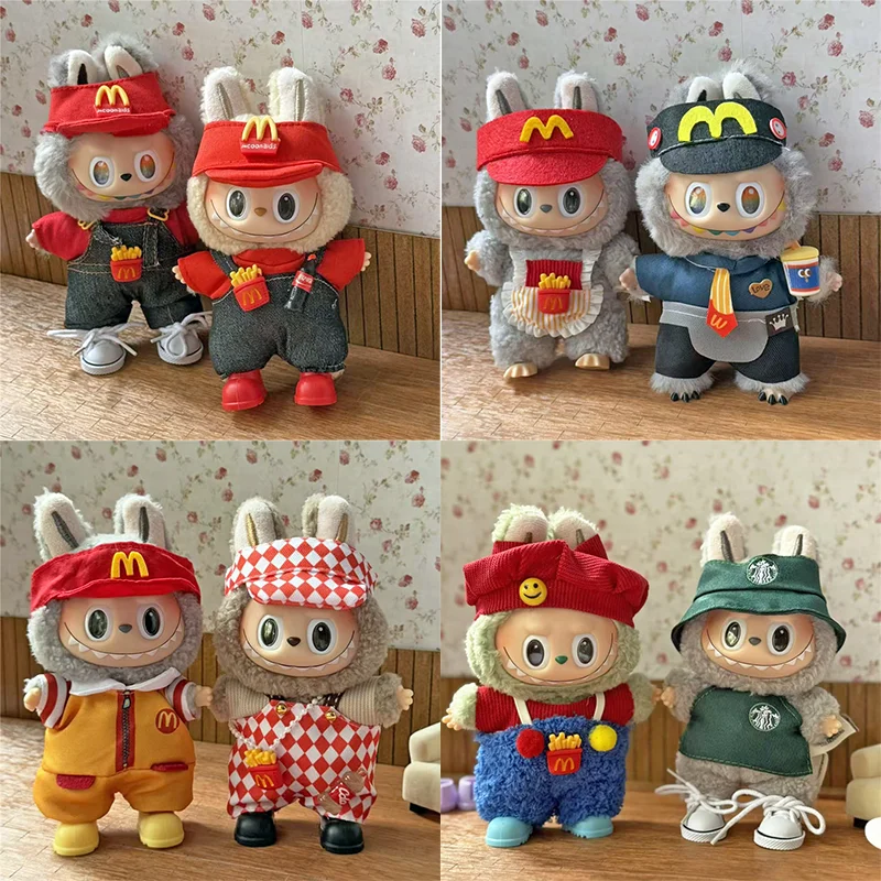 15 17cm For Labubu Doll Workwear Outfit Clothes Fast Food Fries M Cola Fashion Coffee Cosplay Shoes Set Clothing Accessories