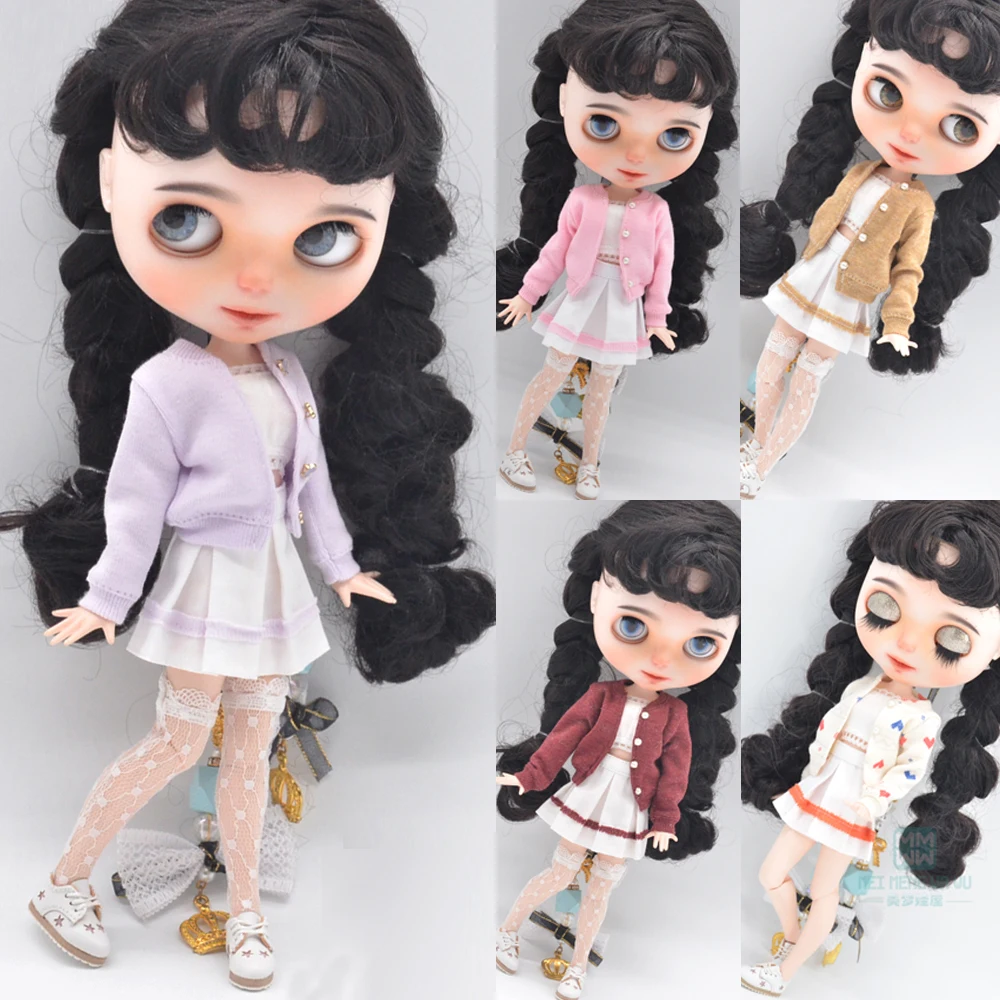 Blyth Doll Clothes Fashion Three-piece purple wool cardigan for Toys Azone OB23 OB24 doll accessories