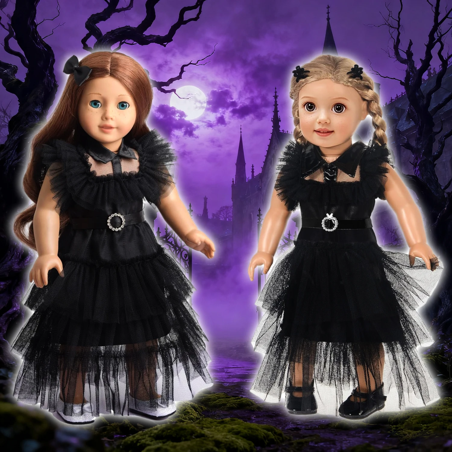 18 Inch Girl Dolls Halloween Wednesday Dress For American Ours & Generation 43-45 Cm Baby Doll Skirt Kids Toys Gift Sets