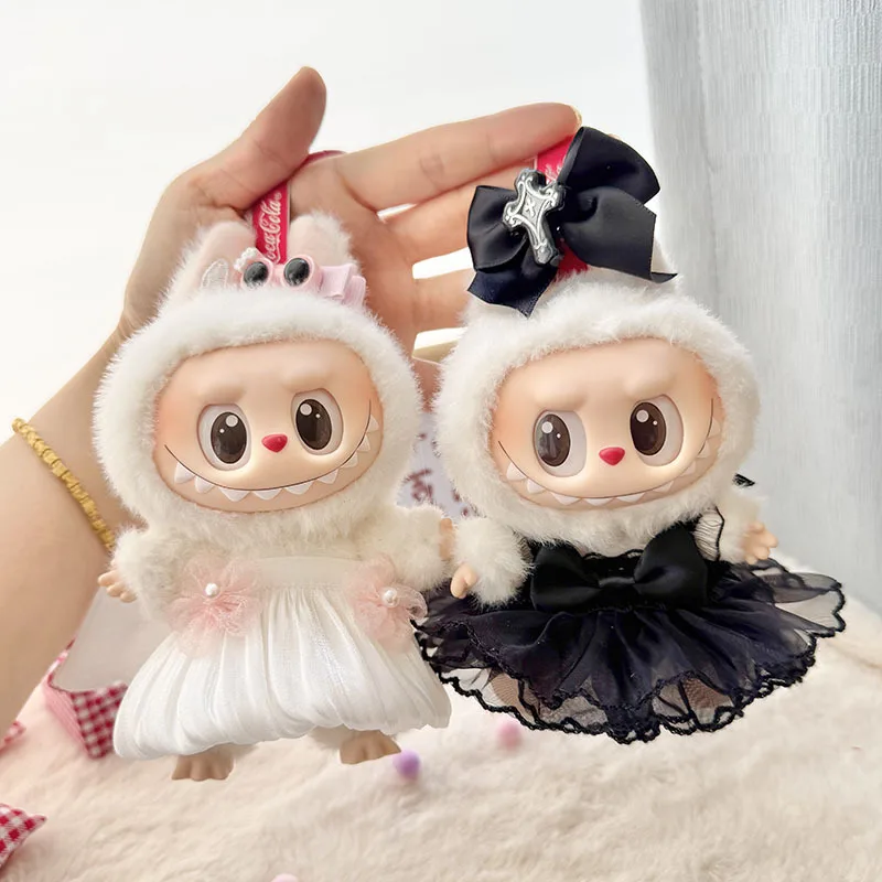 15-17cm Cute Labubu Doll Set Labubu Plush Clothing Fashion Shark Penguin Rabbit Angel Macaron Korean Labubu Accessories Clothing