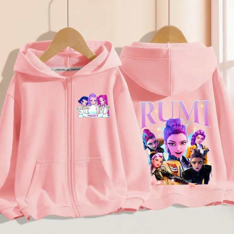 Hooded Jacket Kpop Demon Hunter Girls Cute Rumi Mira Zoey Hoodies Kids Spring Autumn Cardigan Coat Children Long Sleeves Clothes