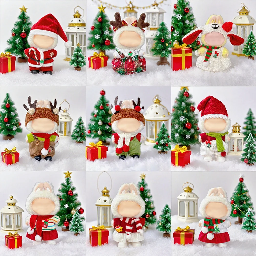 For Kpop Labubu V1 V2 V3 Christmas onesie hat set Clothing cute gift 17cm Mini Plush Doll'S Clothes Outfit Accessories
