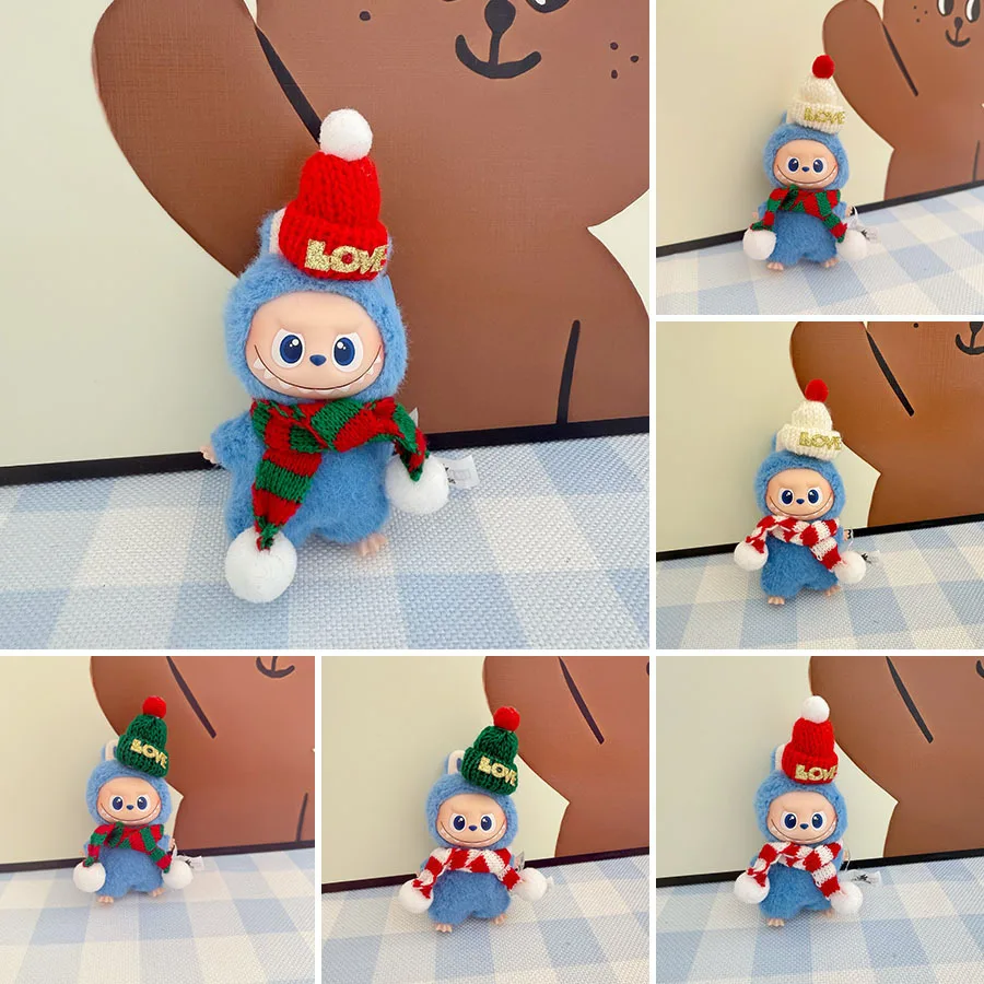 Christmas Clothes For Labubu V4 Accessories Knitted with Hat Set For labubu 4.0 The Monsters Pin for Love Series Doll Outfit