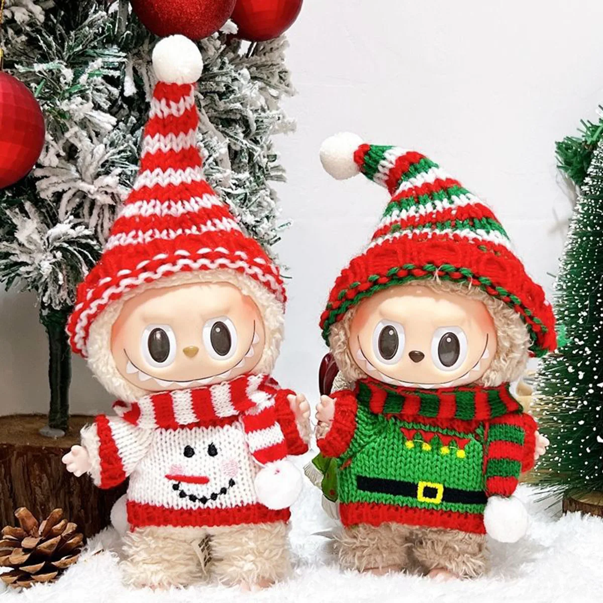 Christmas Labubu Doll ClothesSweater Hat Set for Mini Idol V1 V2 V3, Warm Holiday Plush Toy Outfit, Santa Gift for Collectors