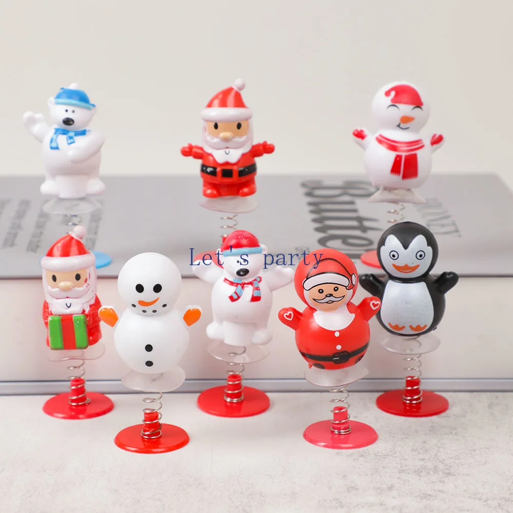 8Pcs Cute Santa Claus Snowman Spring Jumping Dolls Toys for Kids Merry Christmas Theme Party Favors Pinata Fillers Treasure Box