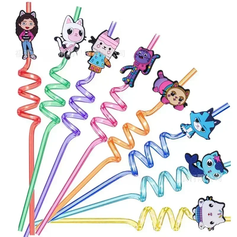 8pcs/set Gabby Dollhouse Cats Reusable Straws Kids Boys Girls Shower Halloween Carnival Party Supplies
