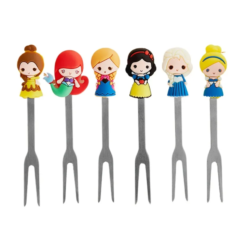 6pcs Disney Princess Series Stainless Steel Fruit Fork Set Cute Cartoon Snow White Ariel Cinderella Dessert Birthday Party Forks