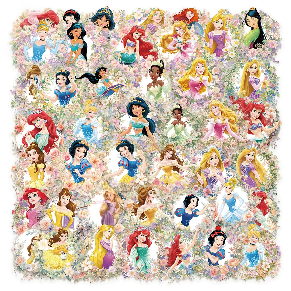 10/30/50pcs Cute Disney Princess and Flowers Cartoon Stickers Snow White Ariel Decals DIY Notebook Phone Transparent PET Sticker
