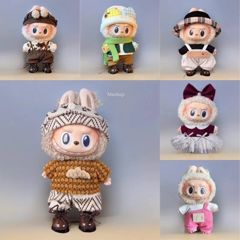 For 17cm Labubu Baby Clothing Coffee Blind Box V1 V3 Working Clothes Clothes Replacement Fashion Retro Delicate Suit Toy  Read more
