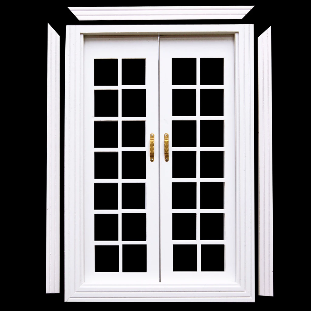 1/12 Dollhouse Miniature Exterior Wooden French Door - White