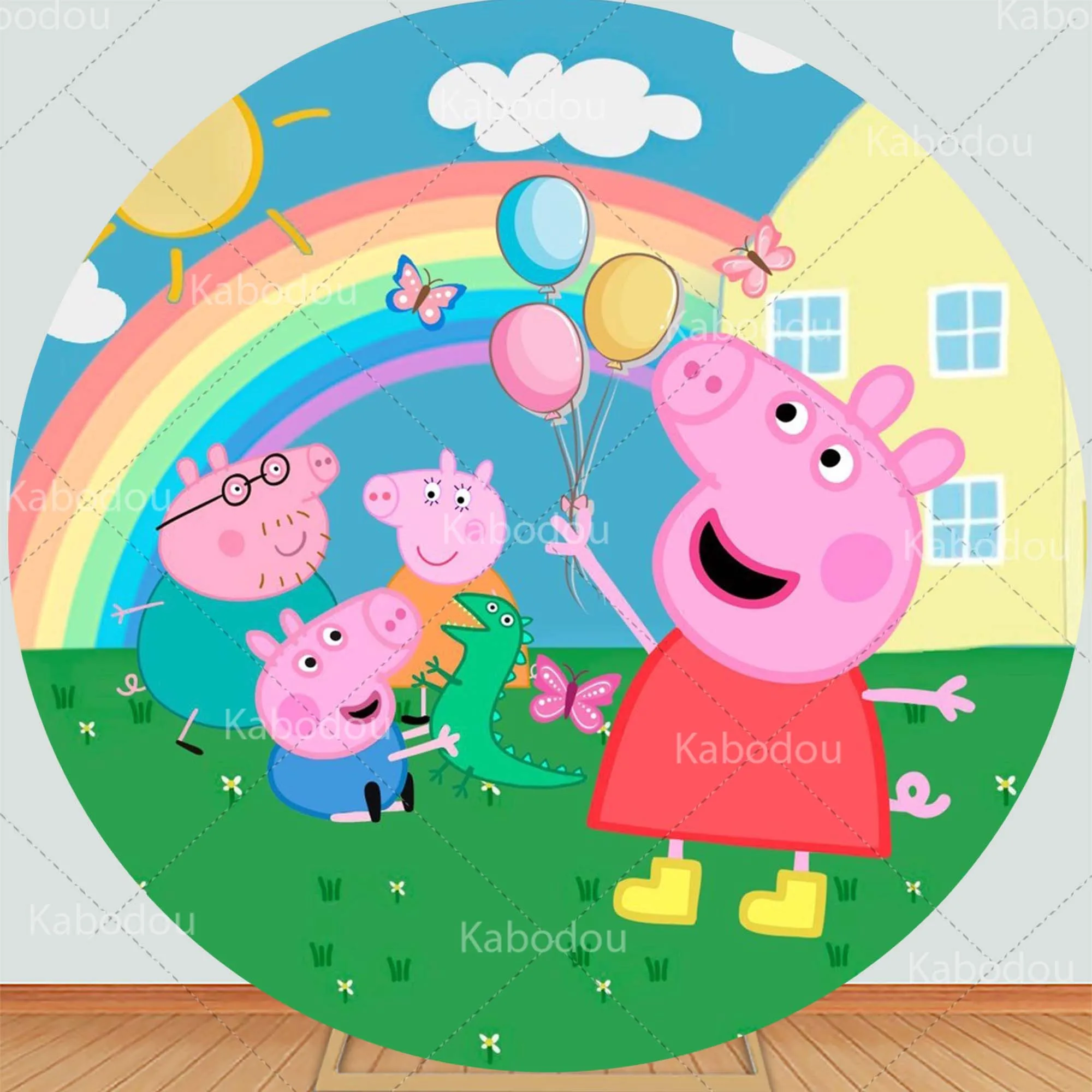 The Pig Family George Round Backdrop Boys Birthday Party Decoration Baby Shower Photography Background Circle Studio Prop