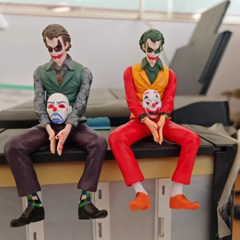 New Joker Heath Ledger Anime Figures Sitting Green Suit Handheld Joker Mask Car Decoration Model Kids Toys Children Xmas Gifts
