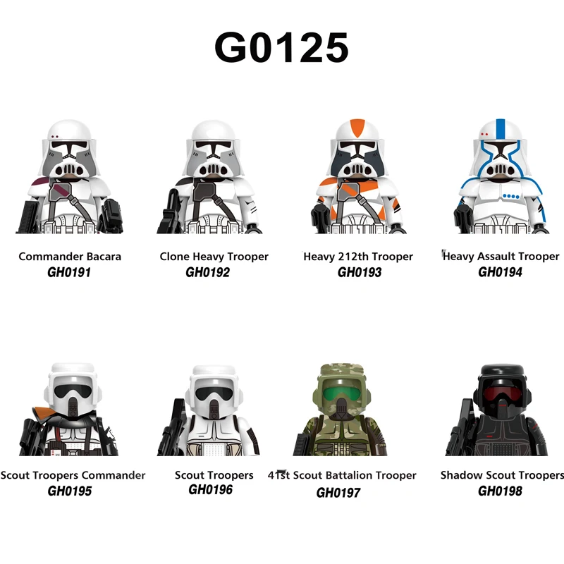 G0125 Building Blocks 8pcs/set 41st Scout Battalion Trooper Commander Bacara Brick Figure Clone Heavy Trooper mini Assembly Toy