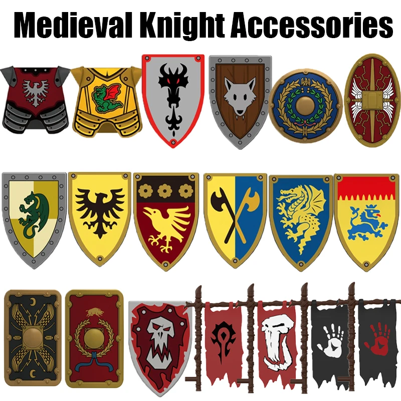 MOC Medieval Military Castle Knight Armor Shield Series Building Blocks War Army Soldier Figures Accessories Weapon Bricks Toys