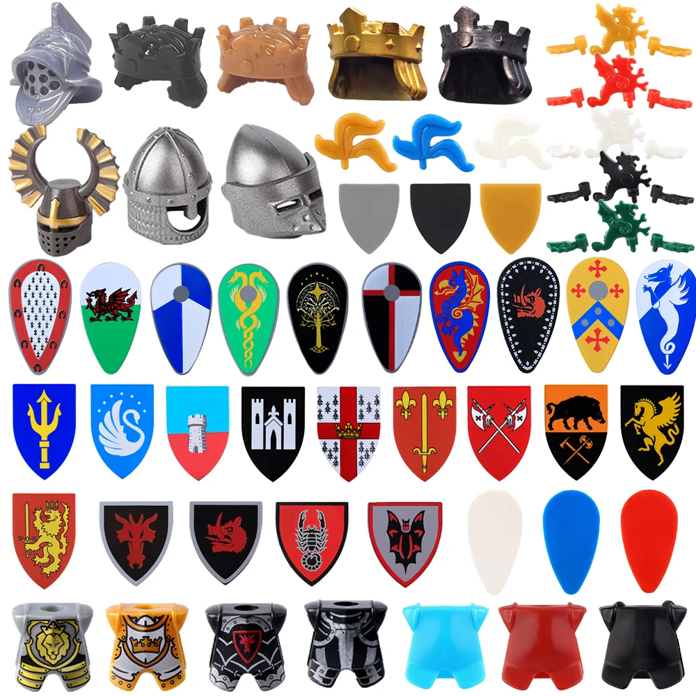 MOC Medieval Soldier Shoulder Armor Building Blocks Knight Figure Wearing Part Accessories Helmet Wings Weapon DIY Toy Gift K001