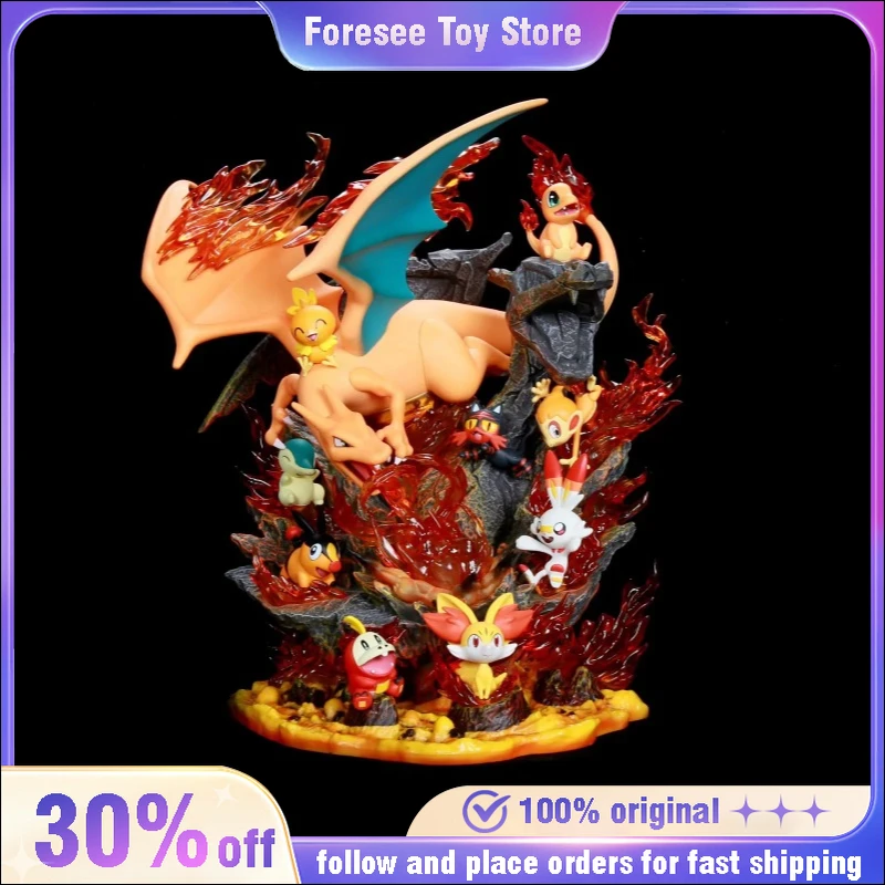 32cm Pokemon Charizard Family Anime Figure with Light Gk Collectible Action Figurine Statue Model Desk Decors Christmas Gift  Read more
