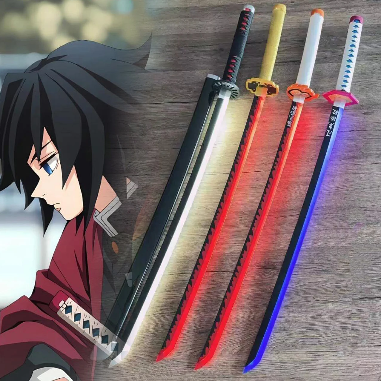 40inch Bright Demon Slayer Katana LED Light Tomioka Giyuu Sword Anime Cosplay Prop Real Size Japanese Katana Samurai Sabre Toy