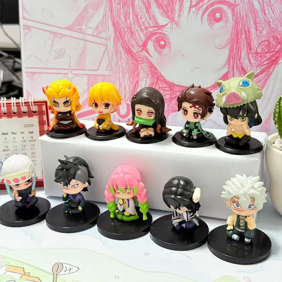 Q Posket Demon Slayer Figure Wholesale Mini Figurine 5cs 10Pcs 15Pcs Sets Kimetsu No Yaiba Small PVC Dolls Desktop Decoration