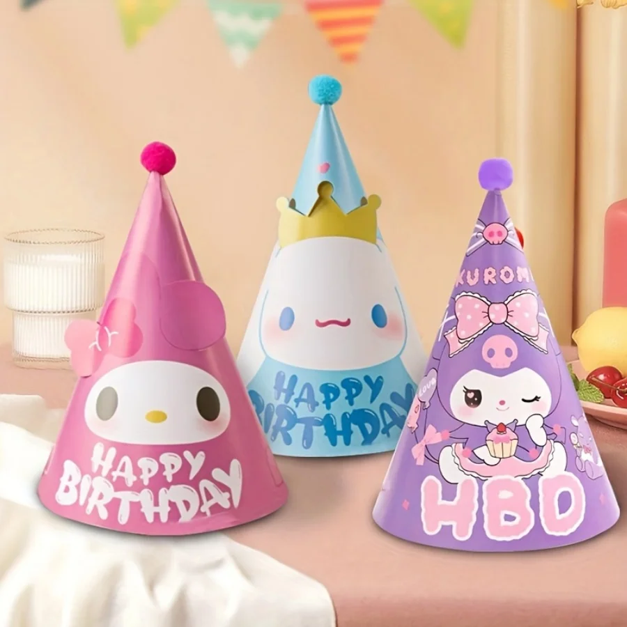 5PCS My Melody Kuromi Cinnamoroll Birthday Party Hat Set Cute Cone Headwear For Daily Celebrations Holidays&Photo Props