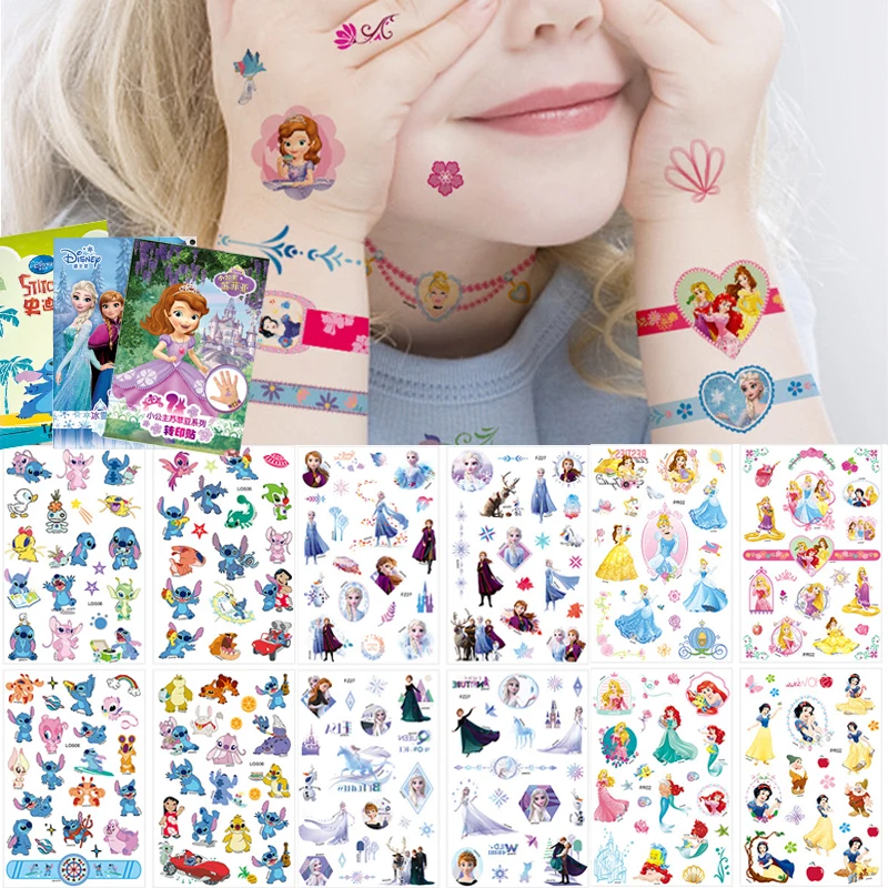Disney Anime Stitch Tattoo Sticker Kawaii Frozen Princess Sofia Cartoon Stickers Cartoon Cinderella Snow White Tattoo Sticker