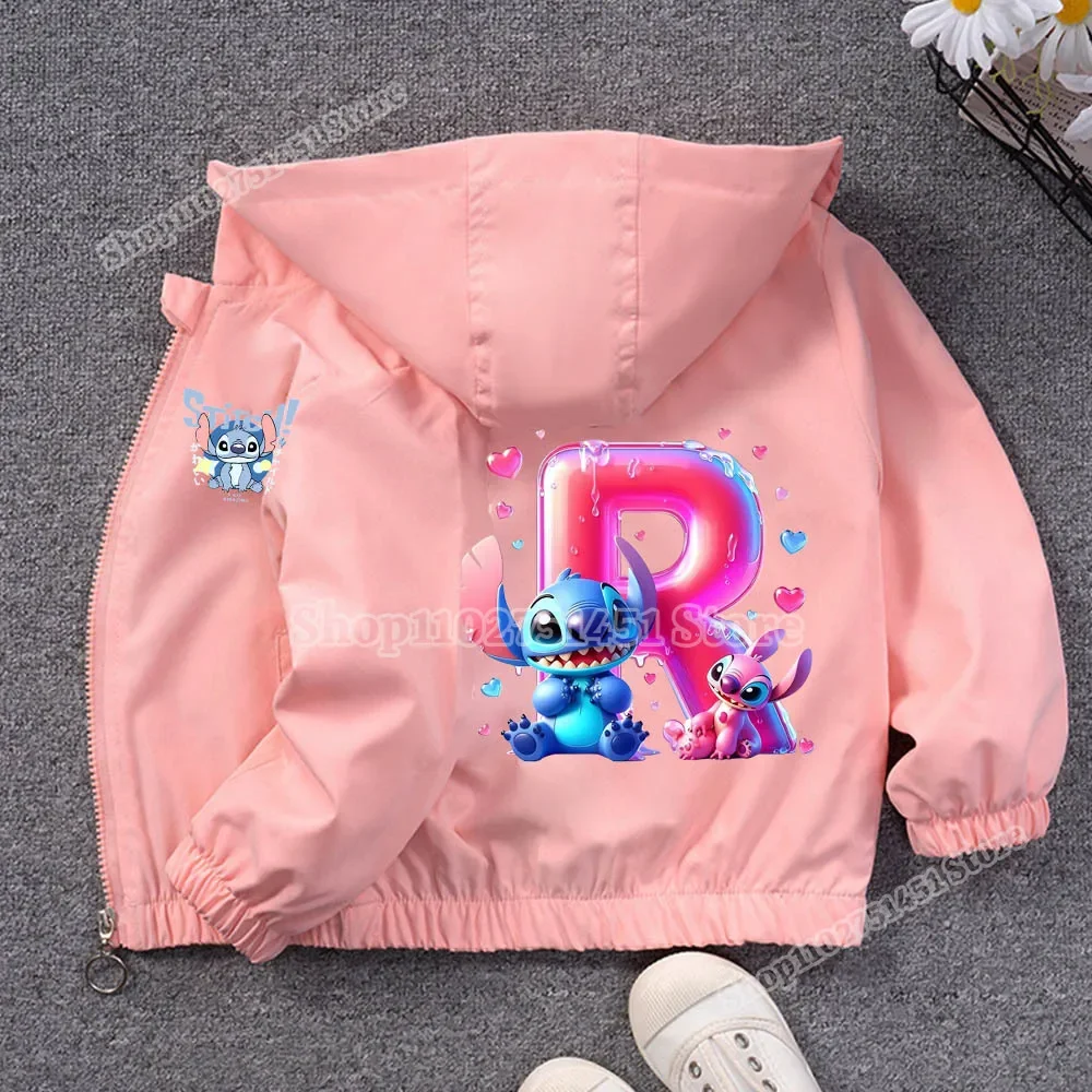 Disney Stitch A-Z Print Jacket Name Combination Letter Hoodie Kawaii Zipper Sweatshirt Cartoon Kid Girls Clothes Winter Coat Top