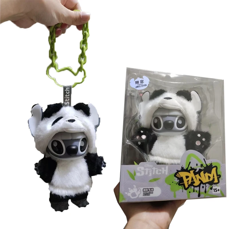 2025 New Miniso Disney Vinyl Toy Stitch Panda Version Chinese Region Limited Anime Figure Movable Desktop Ornament Keychain