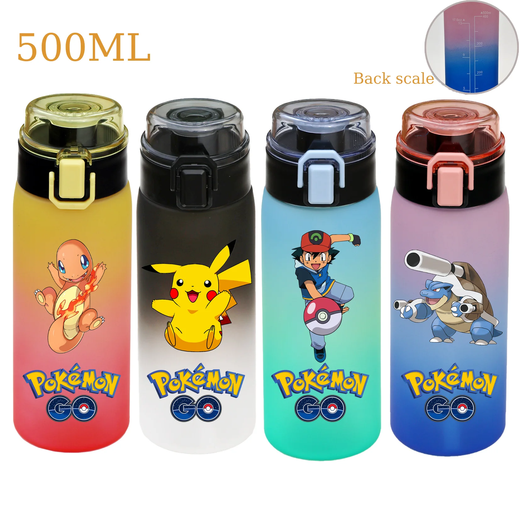 500ML Pokemon Pikachu Charizard Bulbasaur Anime Water Cup Portable Fitness Drink Bottle Kettle With Rope Travel Tea Cup Kid Gift