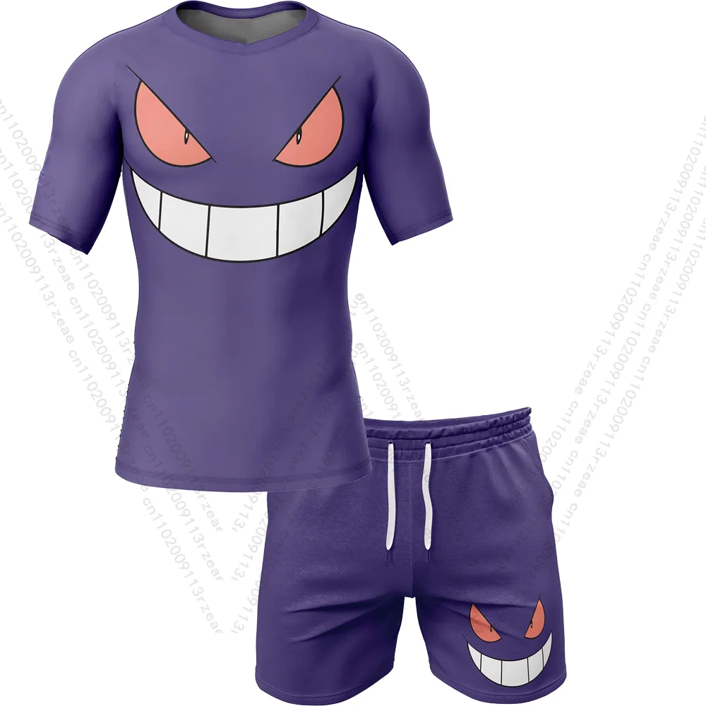 Gengar Kaiju Japan Anime Pocket Monster Men's Workout Set Print Gym T-shirt Kawaii Breathable Shorts Quick Dry Sports kid Suit