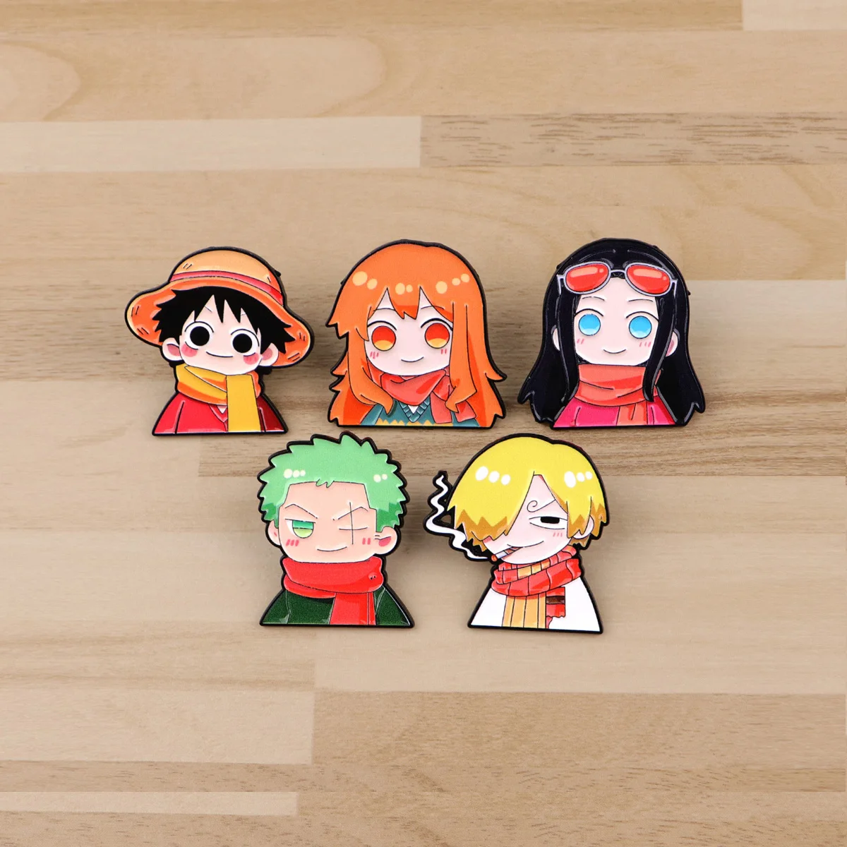 Cute Japanese Anime Luffy Enamel Pin Girls Women's Brooches Lapel Pins for Backpack Manga Badges Jewelry Cosplay Accessories