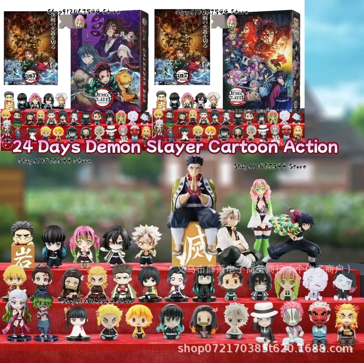 Demon Slayer Advent Calendar Anime Kamado Tanjirou Christmas 2D Box Figure Doll Cartoon Xmas Countdown Calendar Toys Gifts
