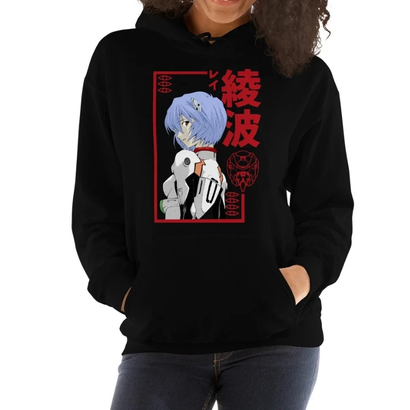 Unisex Neon Genesis Evangelion NERV Rei Ayanami Anime Black Hoodie Men's and women's same streetwear