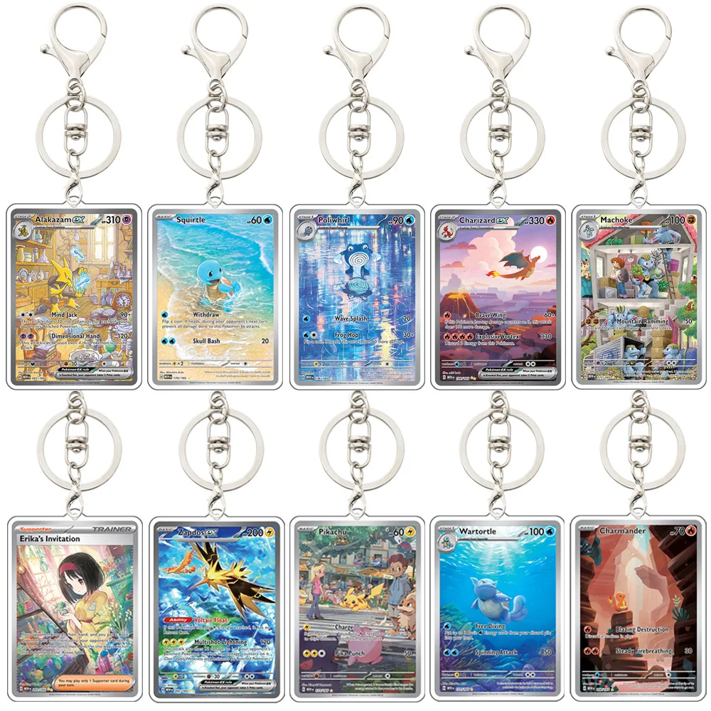Pokemon Anime Squirtle Alakazam Charizard Zapdos Venusaur Bulbasaur Charmander Poliwhirl Acrylic Card Keychain Pendant 5Cm