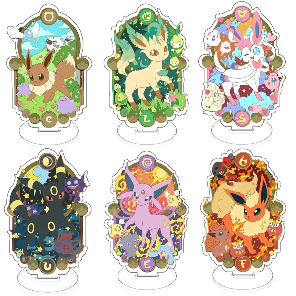 Pokemon Anime Figure Eeveelution Leafeon Sylveon Espeon Umbreon Eevee Jolteon Glaceon Flareon Acrylic Small Stand Ornaments 10cm
