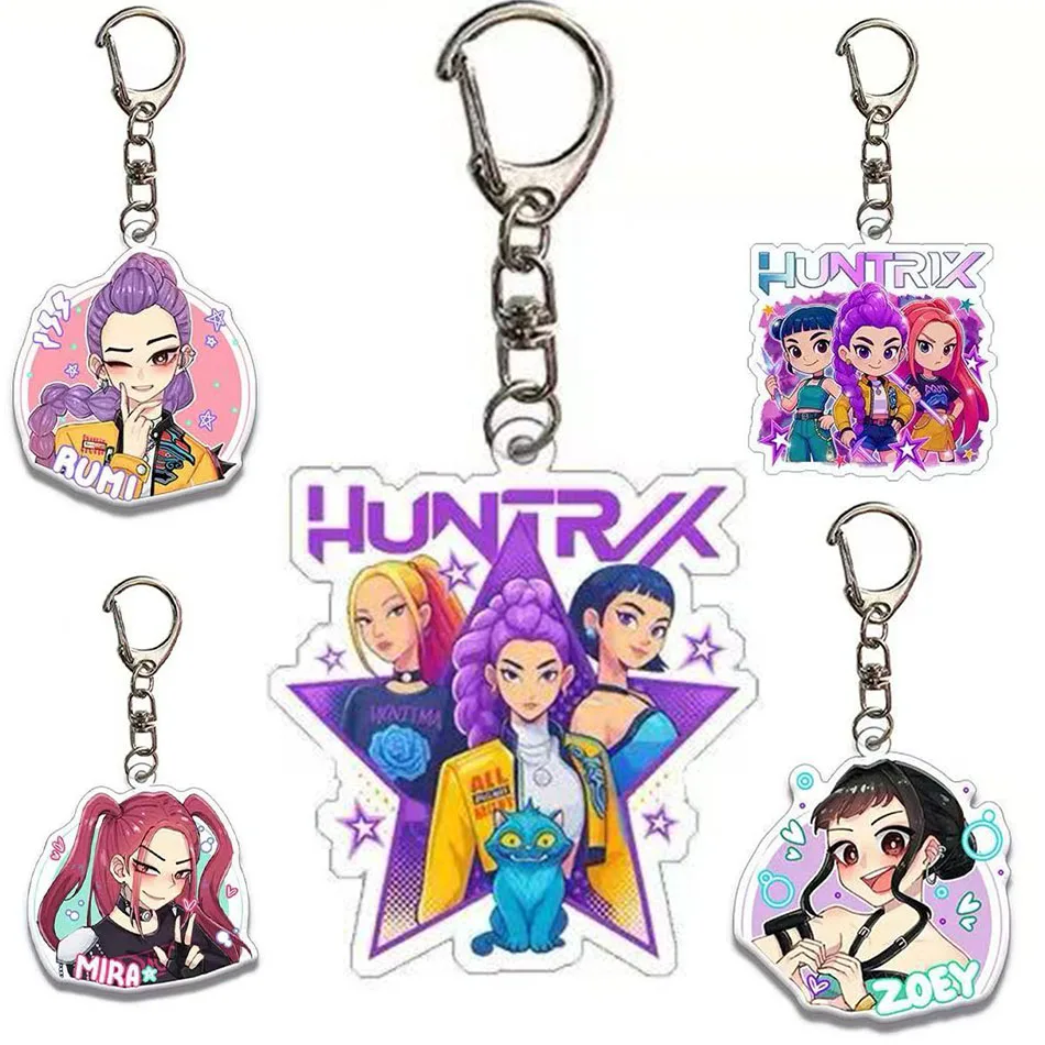 Cute Kpop Band Demon Hunters Huntrix Saja Boys Keychains for Accessories Jewelry Rumi Zoey Jinu Derpy Tiger Keyrings Fans Gifts
