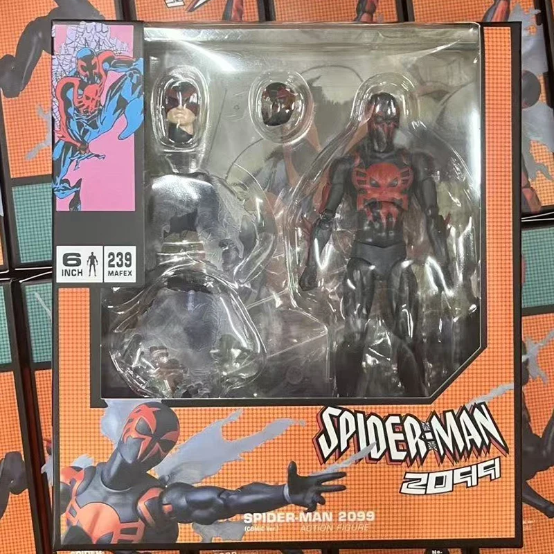 In Stock High Quality Spider-Man 2099 Mafex 239 Anime Spiderman Action Figure Movable Joints Model Doll Set Toy Xmas Kids Gift