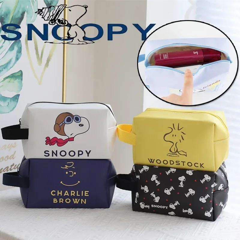 New Snoopy Charlie Brown PU Pen Case Large Capacity Pen Case Handheld Waterproof Travelling Wash Bag Girls Portable Cosmetic Bag