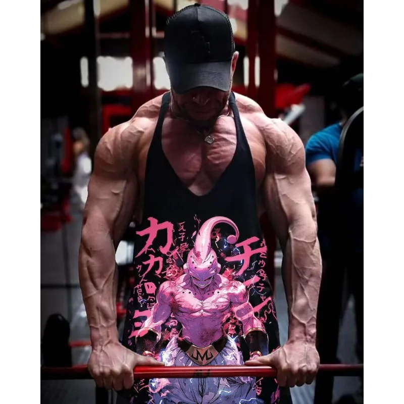 DRAGON BALL Men's Tank Tops Japanese Anime Majin Buu Print Summer Male Clothing Cotton Breathable Sportswear Basketball Jersey