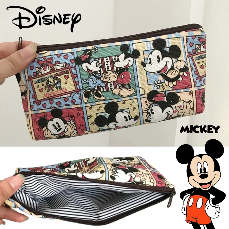 Disney Mickey Mouse Pencil Bag Student Stationery Pouch Cartoon Anime Pen Case Canvas Large Capacity Pen Bags Office Supplies