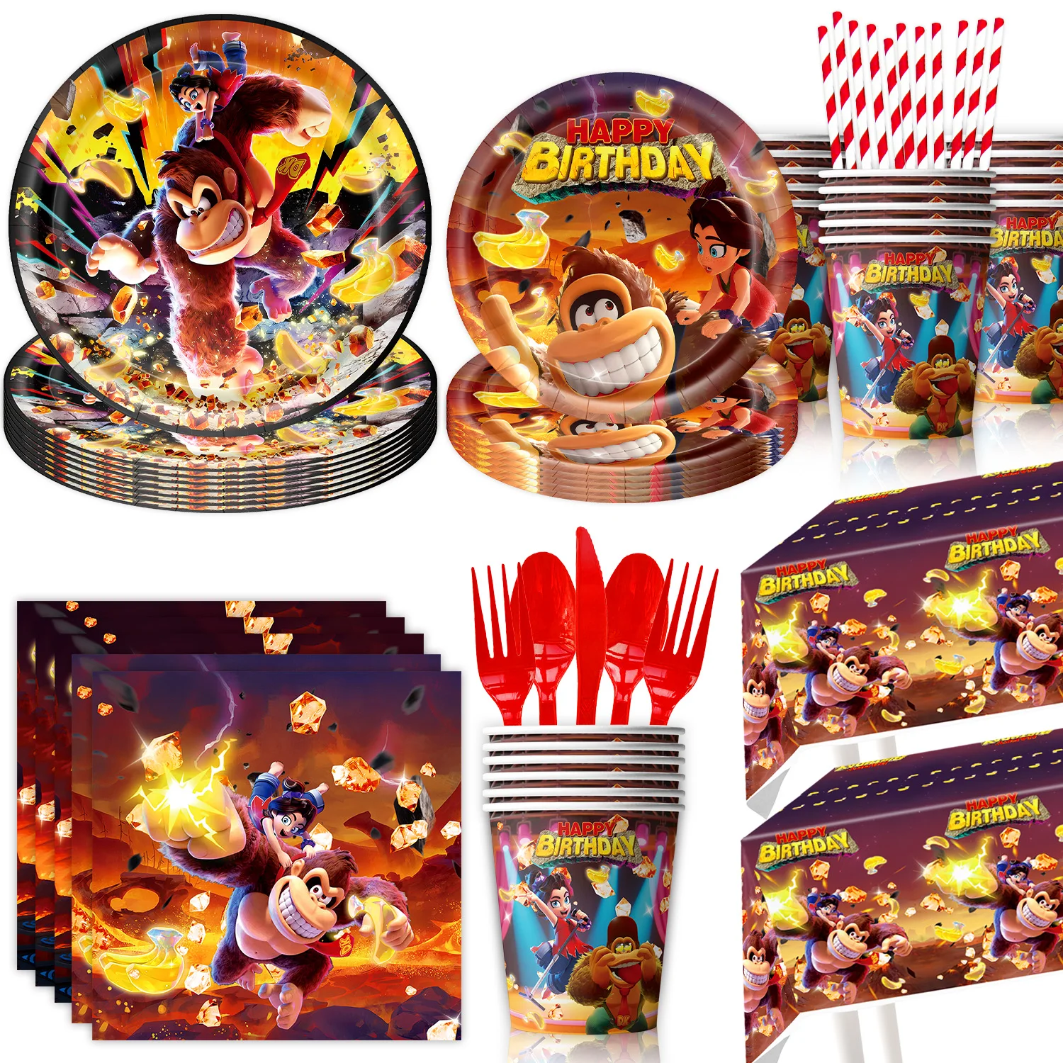 Cartoon Game Donkeys Kong Birthday Party Decor Disposable Tableware Set Plate Cup Tablecloth Banner Baby Showe Kid Party Supplie