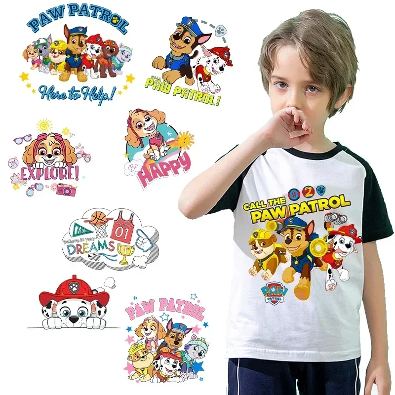 Paw Patrol Iron Patches Washable Heat Thermal Transfer Stickers Self-restraint Home Clothes Hats Trousers DIY T-shirt Kids Gift
