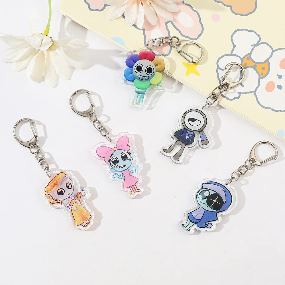 Dandys World Keychains Kids Toys Kawaii Cartoon Figure Key Chain Acrylic Car Keyring Backpack Accessories Children Birthday Gift