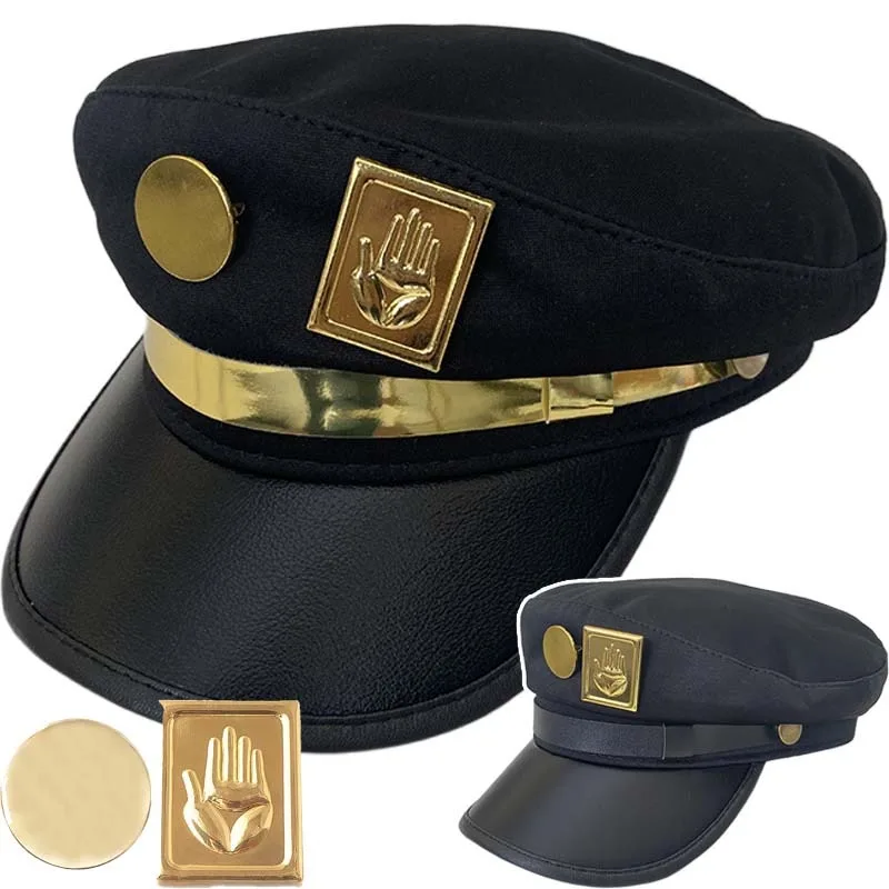 JoJo Bizarre Adventure Jotaro Kujo Cosplay Hats Unisex Anime Adult Metal Badge Hat Prop DIY Cartoon Cos Cap Accessories Gifts