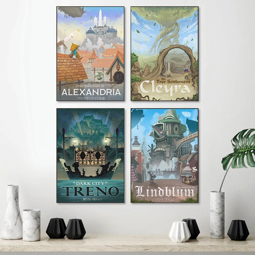 Final Fantasy Alexandria The Kingdom Of Dark City Tree Settlement Poster Print Wall Art Pictures Canvas Painting Room Home Decor