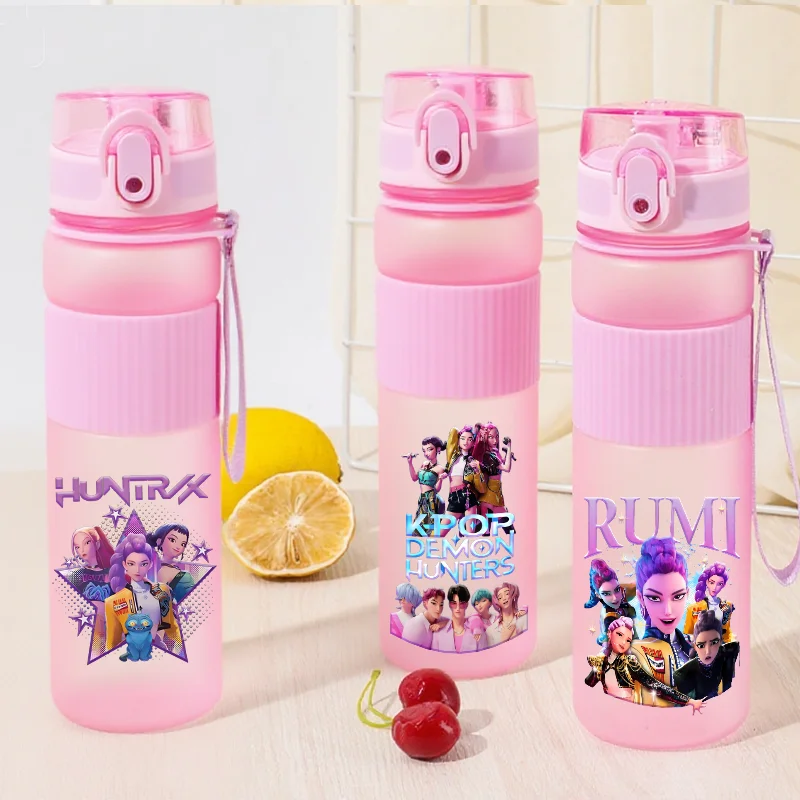 KPop Demon Hunters 650ml Water Bottles Anime Sanding Drinking Cup Straw Portable Cute Sport Glass School Travel Outdoor Supplies