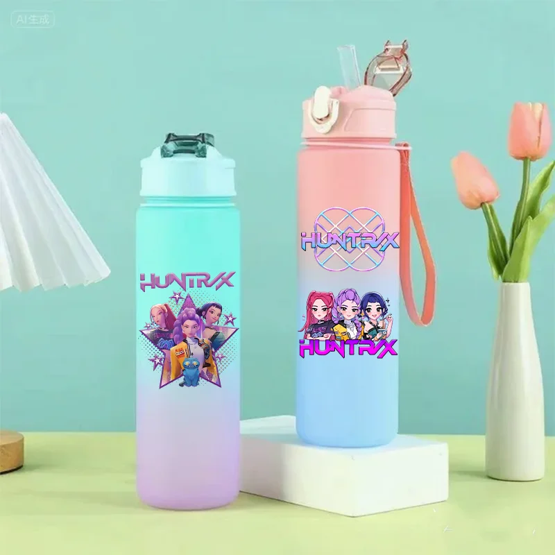 750ML KPop Demon Hunters Gradient Color Water Cup HUNTRIX Rumi Mira Zoey Jinu Drinking Bottle Saja Boys Tiger Kids Birthday Gift