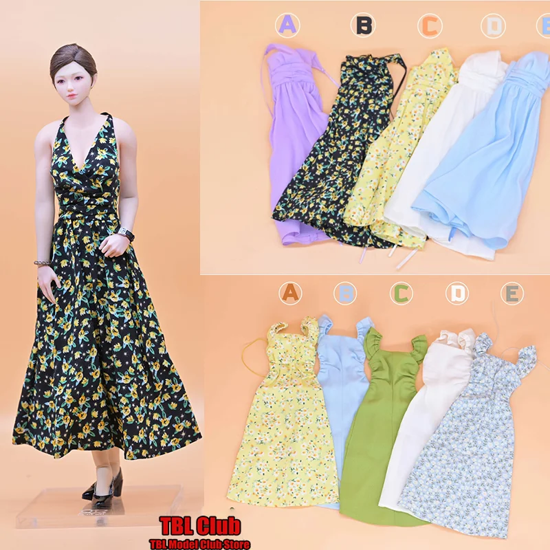 1/6 Scale Female Clothes Fresh Spring And Summer Neck Hanging Dress Flutter-Sleeve Long Skirt For 12-inch Action Figure Soldier