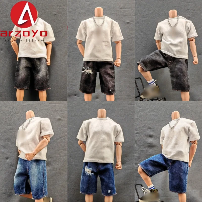 1/6 Scale Leisure Washed Short Jeans Short Ripped jeans Pants Clothes Model Fit 12'' Male Soldier Action Figure  Read more