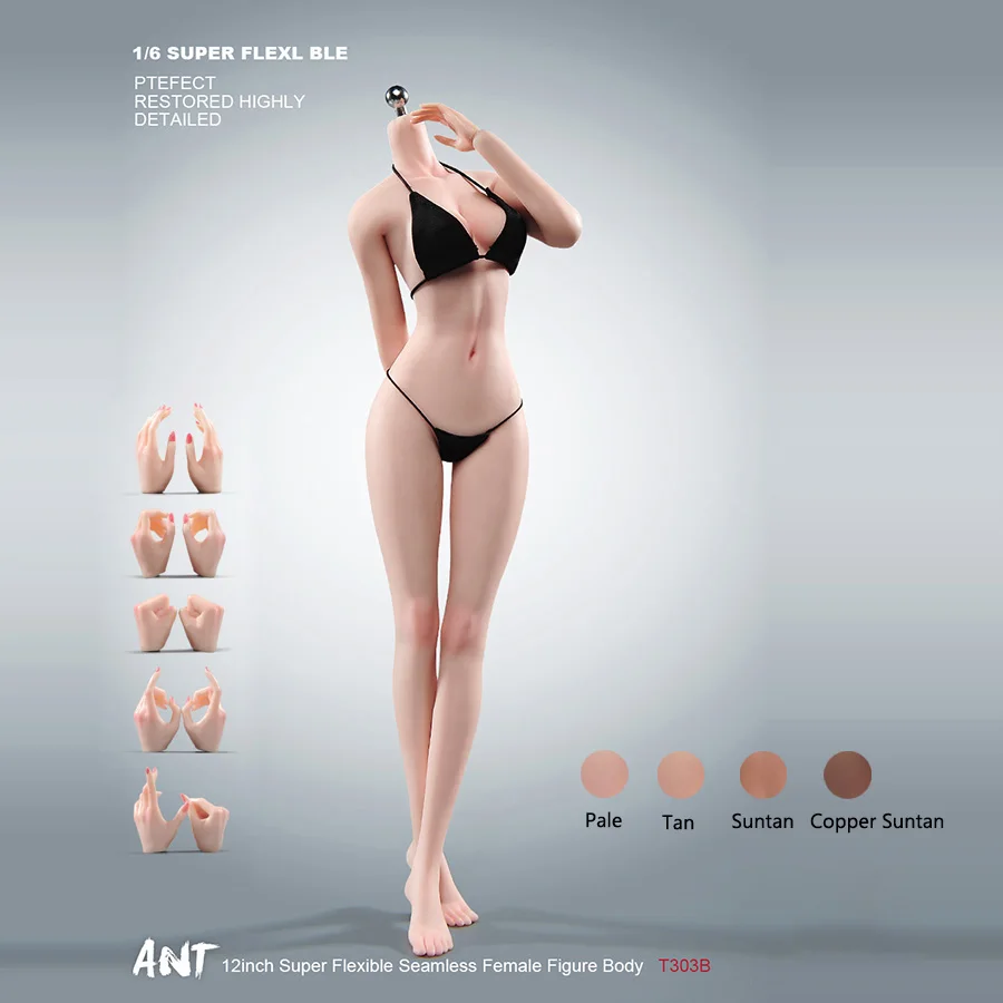 ANT T303 1/6 Makeup Seamless Big Breast Non Detachable Feet Body with Physiological Details 12'' Female Soldier Action Figure